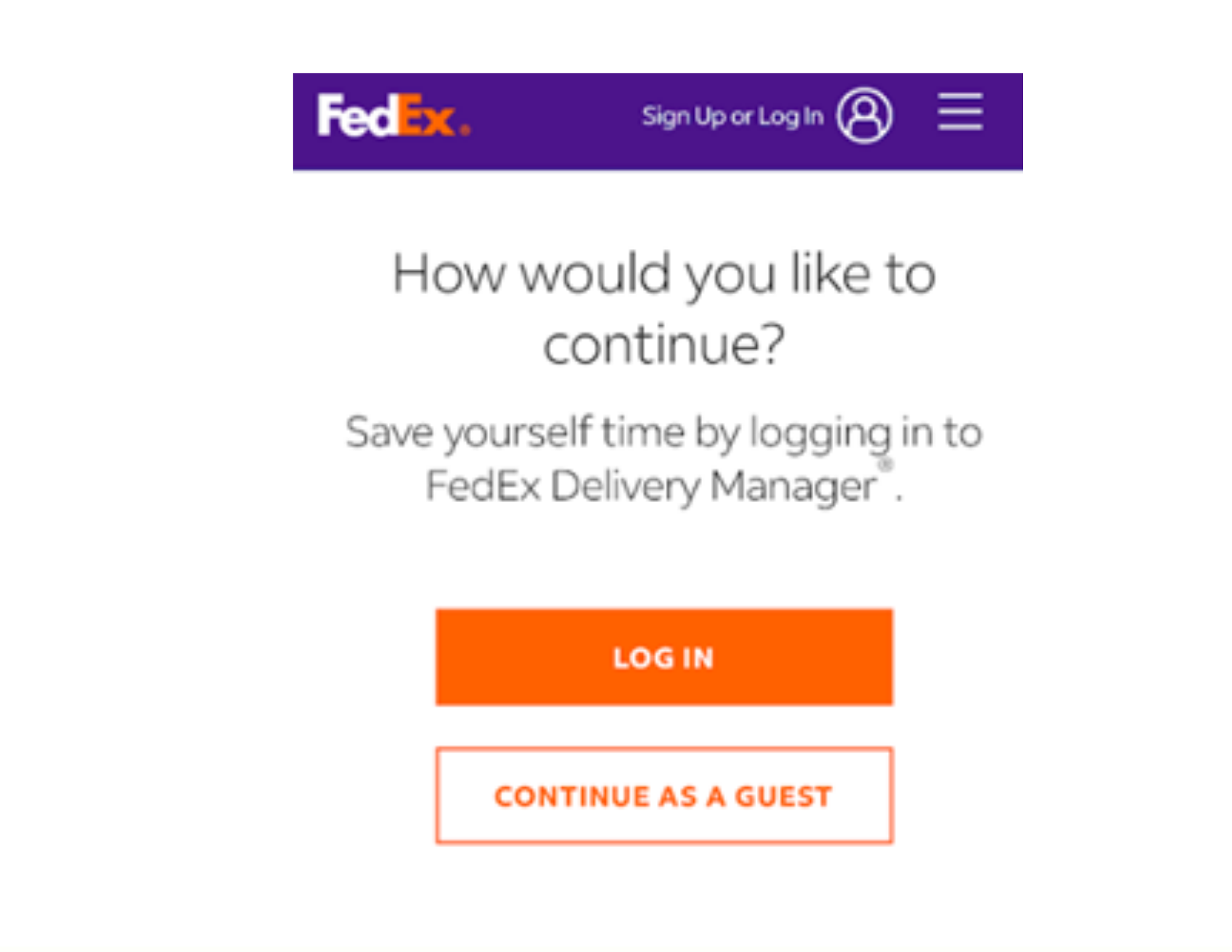 If you choose to continue as a guest, you will be required to verify your identity. FedEx will send a verification code to the phone number associated with your Integrity account.