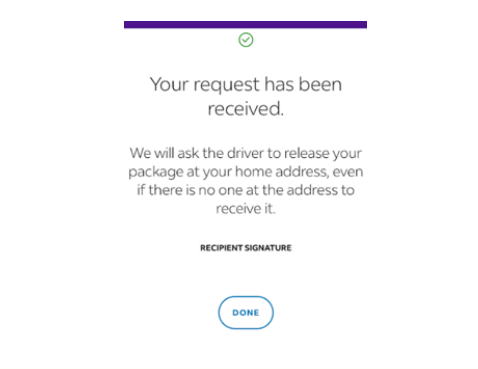 After completing the signature step, you will be directed to a confirmation screen, indicating that you have successfully signed for your package.